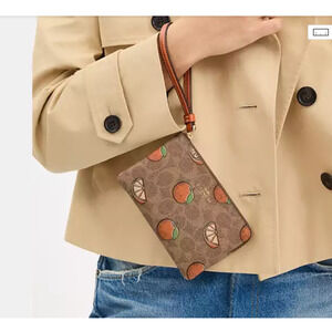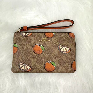 New With Tags, Coach Corner Zip Wristlet In Signature Canvas With Orange Print In Tan CBB82 NWT from smoke and pet free environment.