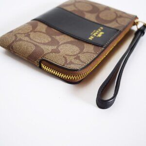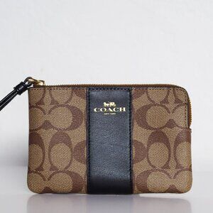 Coach Corner Zip Wristlet In Signature Canvas With Stripe NWOT