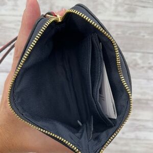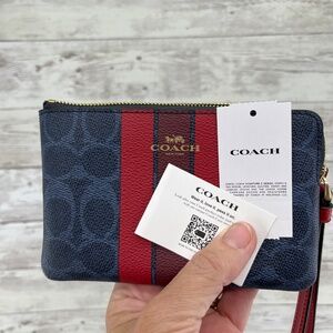 Coach Corner Zip Wristlet In Signature Canvas With Varsity Stripe Wallet Bag
