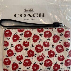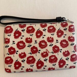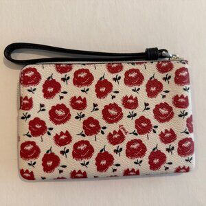 Coach Corner Zip Wristlet W/ Floral Print - red, chalk
