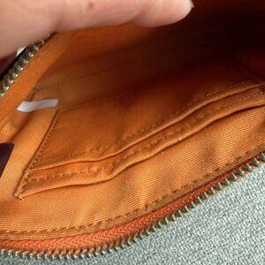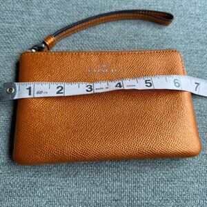 Coach Corner Zip Wristlet Wallet Metallic Orange Leather Gold Holiday Valentine
