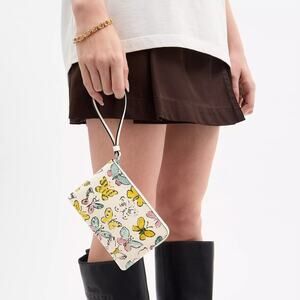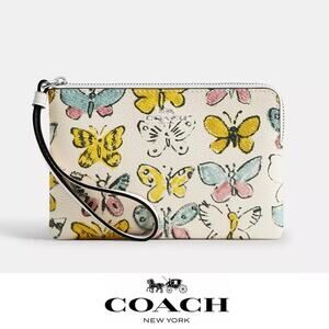 ❤️ Coach Corner Zip Wristlet With Butterfly Print
