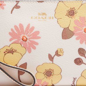 🌸 Coach Corner Zip Wristlet With Floral Cluster Print Gold/Chalk Multi