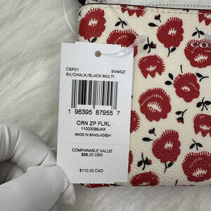 New With Tags, Coach Corner Zip Wristlet With Floral Print In Canvas/Silver/Chalk Multi CBP21 from smoke and pet free environment.