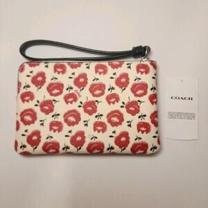Coach Corner Zip Wristlet With Floral Print In Canvas/Silver/Chalk Multi CBP21