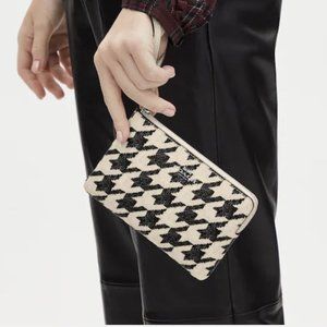 Coach Corner Zip Wristlet With Houndstooth Print CK431