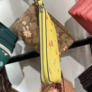 Coach Corner Zip Wristlet With Mystical Floral Print Silver/Yellow Multi
