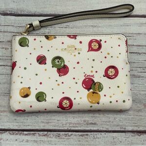 Coach Corner Zip Wristlet With Ornament Print Gold/Chalk (White) Multi