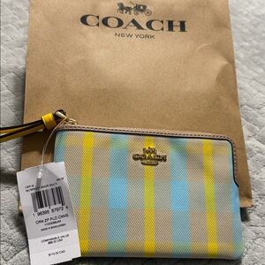 Coach Corner Zip Wristlet With Plaid Print- Color: Im/Bright Maize Multi
