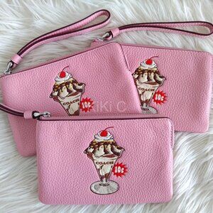 Coach Corner Zip Wristlet With Sundae Graphic CU254 pink ice cream