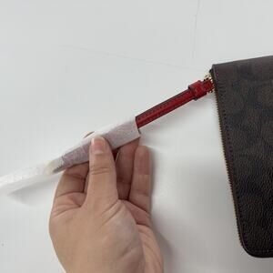 Color: Brown signature print with Red leather stripe and matching Red wrist strap