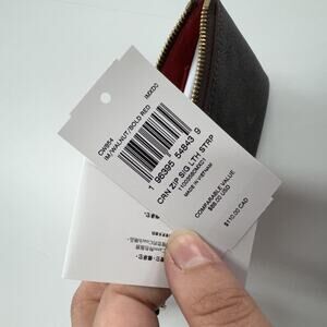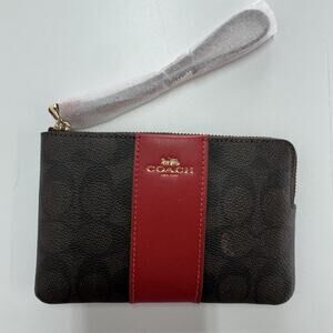 Coach Corner Zip Wristlet Womens Brown Red Signature Canvas Stripe CM684