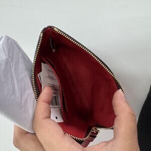 Brand New with Tags. Protective wrap on wrist strap and original hangtag present. Clean, unused interior with paper stuffing; no visible flaws. Zipper and hardware function smoothly. Tags are inside the wristlet in a pocket. they are not attached. This has never been used.