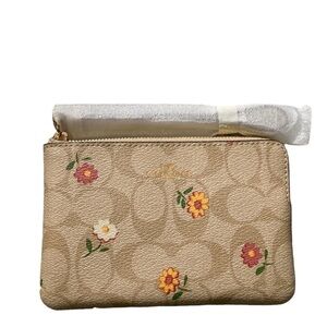 Coach Corner Zip Wristlet in Signature Canvas Ditzy Print NWT