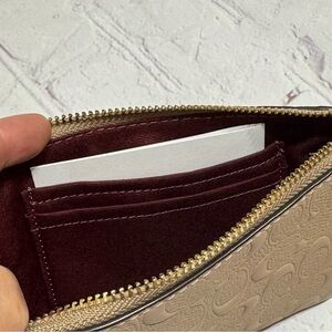 Coach Corner Zip Wristlet in Taupe grain leather with Signature C’s all over Nwt