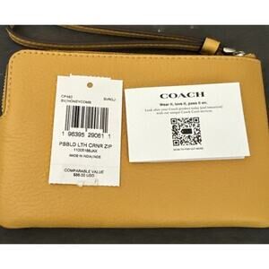 Coach Corner Zip Wristlet /wallet/Yellow/honeycomb Leather Medium Size