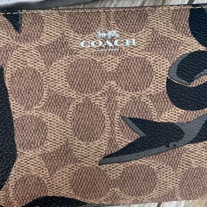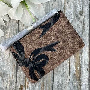 Coach Corner Zip Wristlet In Signature Canvas With Bow Print Bag Wallet Purse