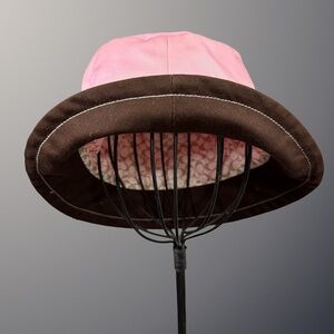 Chic and on-trend, this Coach bucket hat is baby pink with a cute leather bow!