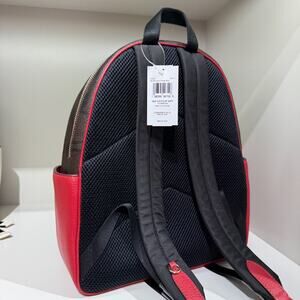 Coach Court Backpack In Signature Canvas CCK72 Walnut/True Red