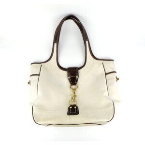 Coach Cream Chalk Brown Canvas Shoulder Bag Tote 10779
