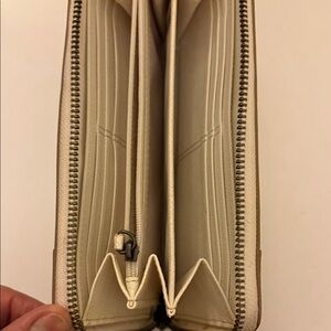 Elegant Coach wallet in cream leather. Stylish and functional. Perfect for daily use.