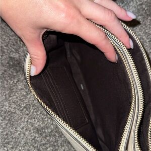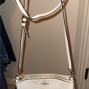 Chic Coach wristlet in cream leather. Perfect for day or night. Sleek and stylish design.