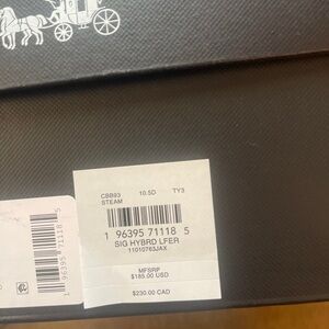 Elegant cream loafers by Coach. Features signature pattern and sleek design.