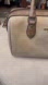 This elegant Coach shoulder bag showcases a luxurious cream color with a textured leather finish, offering both style and sophistication. Its structured design ensures it maintains its shape, making it a perfect accessory for any occasion. Has a pink color fade.. very light. See pic and video.
