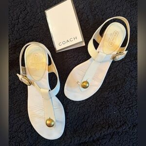 Coach Cream Sandals with Gold Buckle