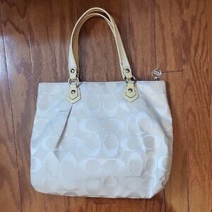 Coach Cream Shoulder Bag with Monogram and Gold Hardware D1120-16289