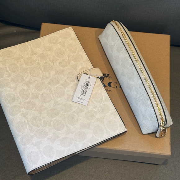 Coach Pencil Case + Notebook In Signature Canvas Chalk/Glacier White NWT