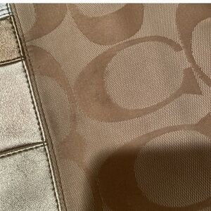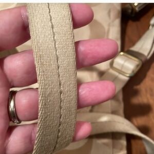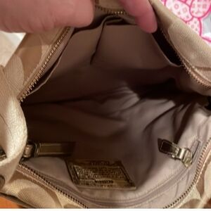 Coach Cream Silver Shoulder Bag with Monogram Striped Accent 10x12