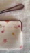Cream wristlet featuring pink and orange stars. Includes a leather wrist strap.
