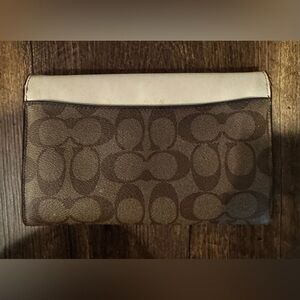 Coach Cream with Brown CC Patterned Clutch with D Rings