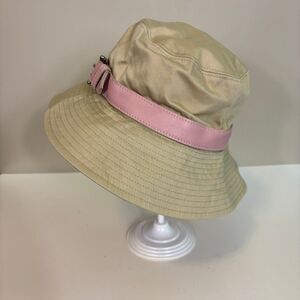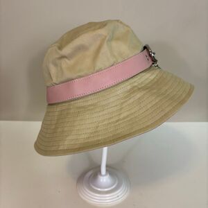 Coach Cream with Pink Leather Buckle Bucket Hat Size Small