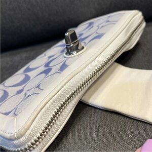 Coach Cricket Insignia Purple Lavender Silver Turnlock Wallet 8”x4”. Full zip