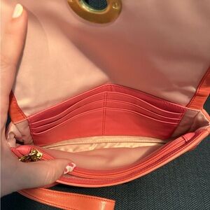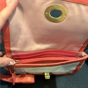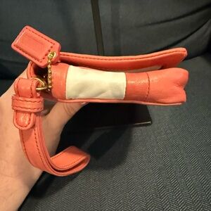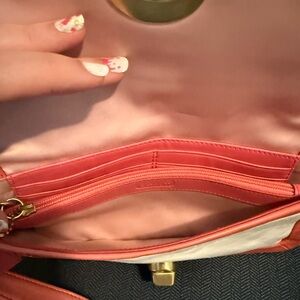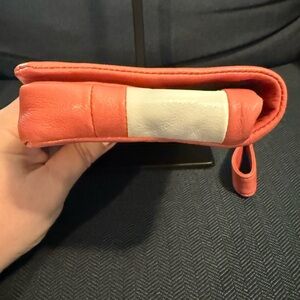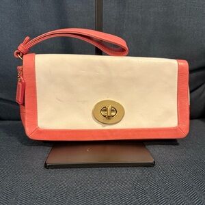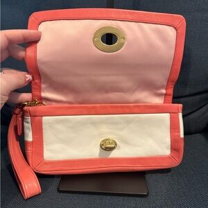 Coach Cricket White Coral Leather Turnlock Flap Clutch Wristlet Wallet