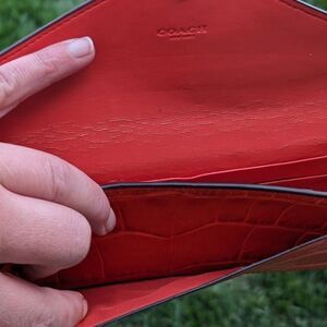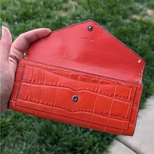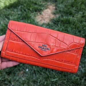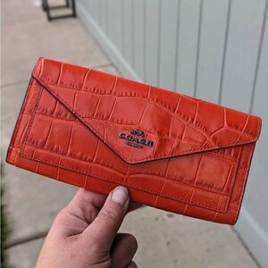 Coach Crocodile Embossed Leather Soft Wallet in Deep Coral (58047)