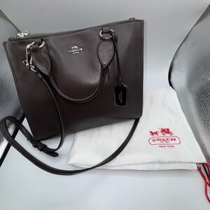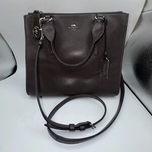Coach Crosby Carryall Handbag Womens Brown Crossgrain Leather Adjustable Strap