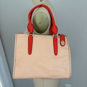 Coach Crosby Mini Carryall in Two Tone Colorblock Leather Apricot/Coral/Gold