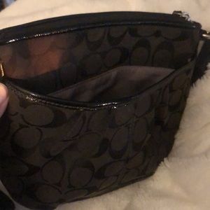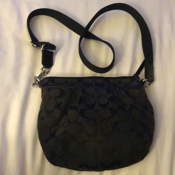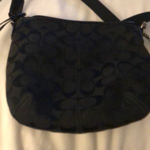 Black logo “C” coach crossbody with adjustable shoulder strap. No stains, rips or wear. Approximately 9”x9”. 1 interior zip pocket, 1 outside pocket- perfect for phone! Smoke free home.
