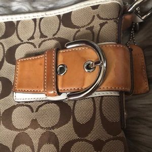 See pics for flaws. Really good condition for having a long time. Strap can be adjusted. Dimensions of purse are 11 x 11. From shoulder to bottom of bag is about 32 inches (just below buttocks), the longest the strap will go.