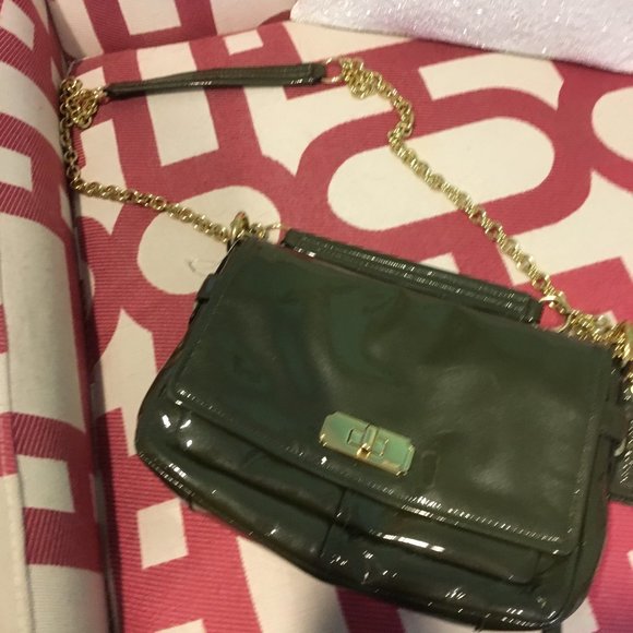 Olive green, patent leather Coach crossbody with gold accents. Never been worn.
