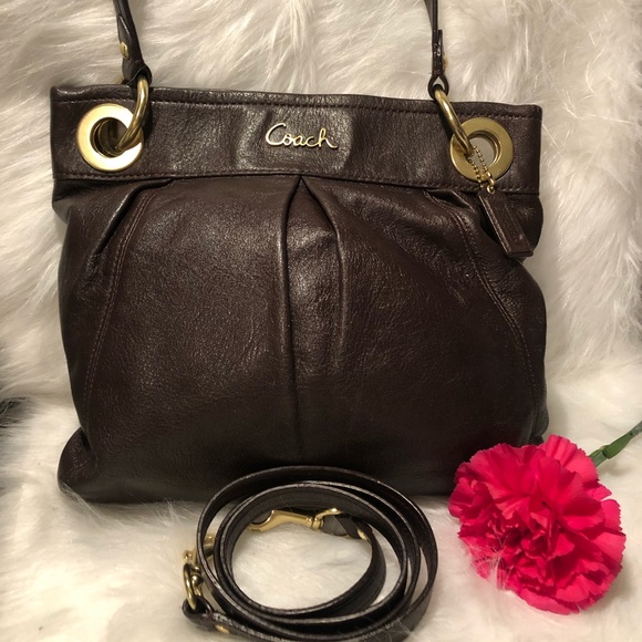 Coach Crossbody in brown leather EUC 12 x 11 x 2 the only issue I see is a bit of fade on the hardware, tried to show in pictures. Great buy