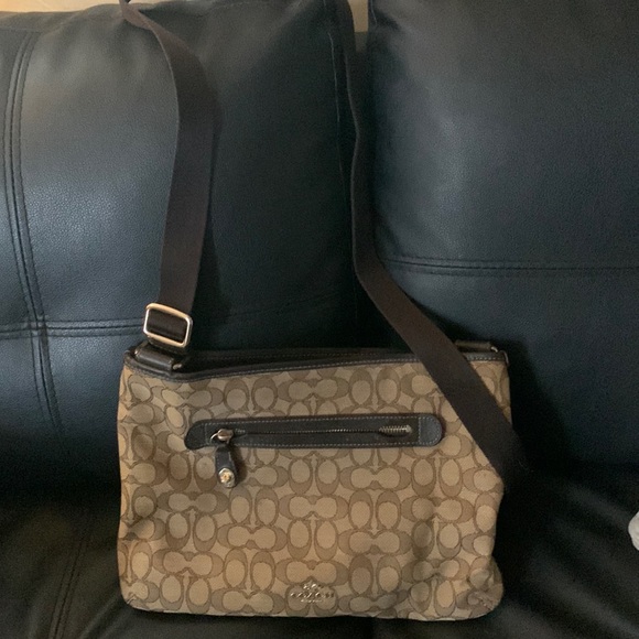 Coach signature cloth crossbody purse. Only worn a few times, still like brand new. 13” x 9”