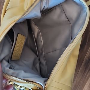 Butter Yellow Coach Crossbody. 16.5"l, 11" h, 6" w. Some dirt and wear that could most likely be washed off with leather cleaner. Gray interior lining.