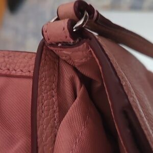Beautiful pink pebble leather in good condition turlock closer silver hardware multiple compartments grear for work or play has minor blemishes shown in pics under flap