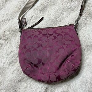 Coach Crossbody Bag Purple Signature C Pleated Small Purse Adjustable Strap