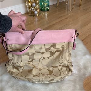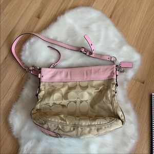 Coach Crossbody Bag—Signature Print w| Pink Leather Trim