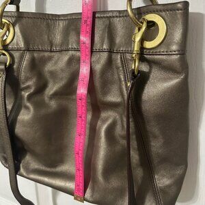 Coach Crossbody Purse, Metallic Bronze/Brown Leather. Authentic